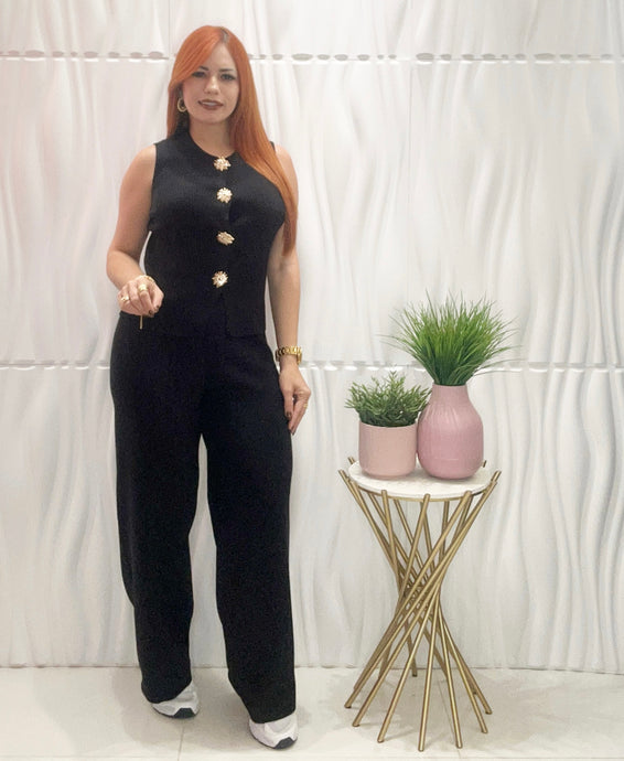 Black Button Top & Pant Set
