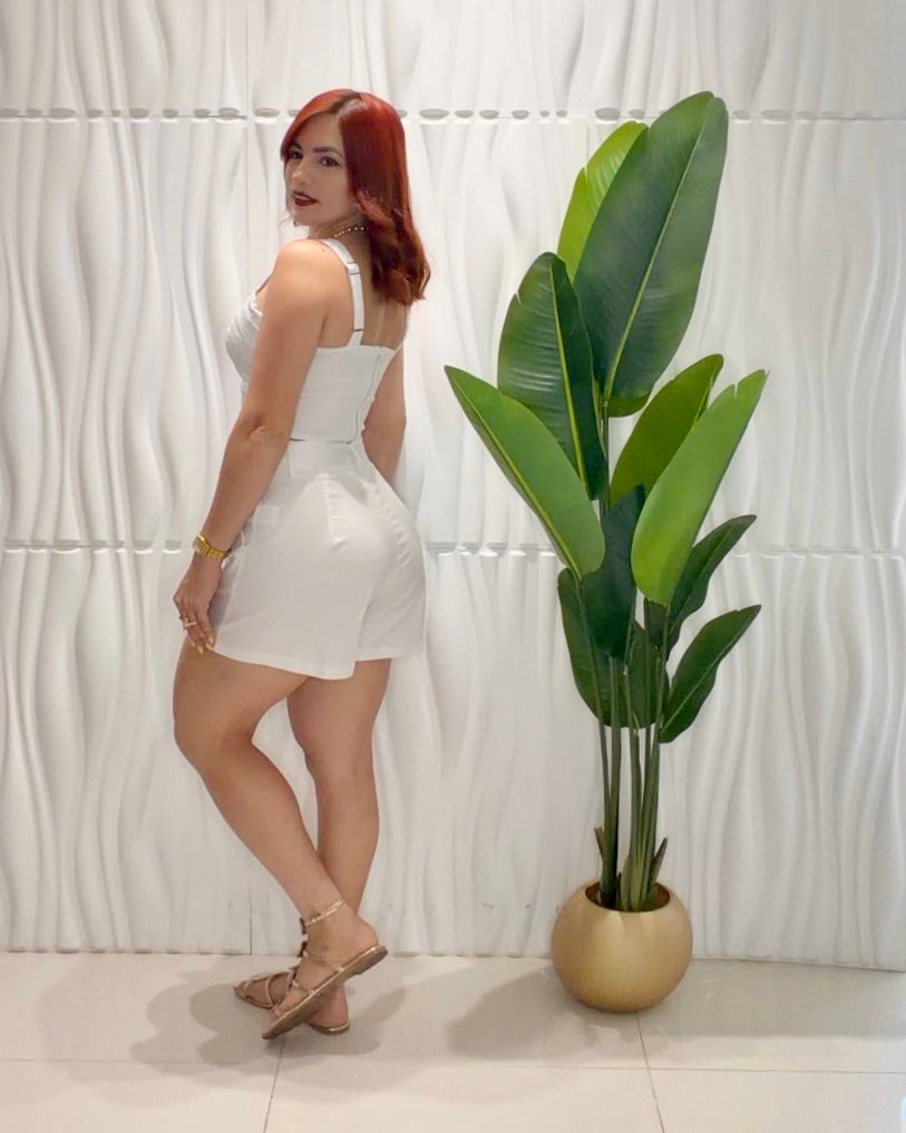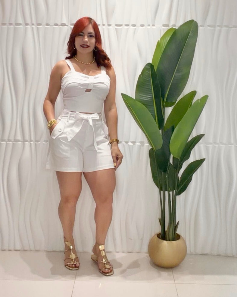 White Crop Top & Short Set